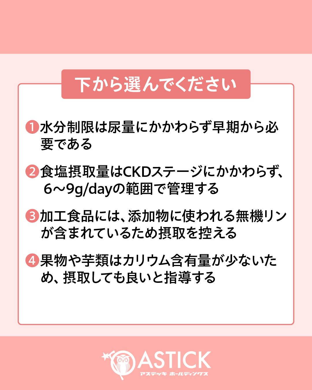 在宅看護指導士試験対策問題にトライ!~慢性腎臓病(CKD)患者の食事療法~
