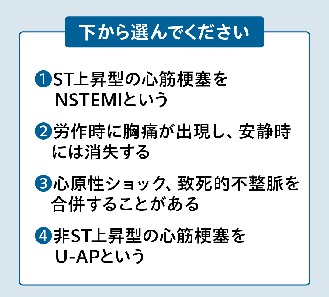 問題「急性冠症候群について正しいものはどれか」