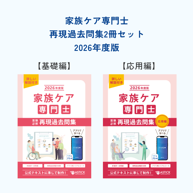 家族ケア専門士受験必修再現過去問集は、全問題にどこにも負けない詳しい解説をご用意しております。